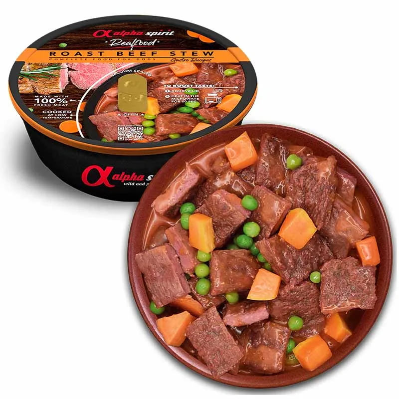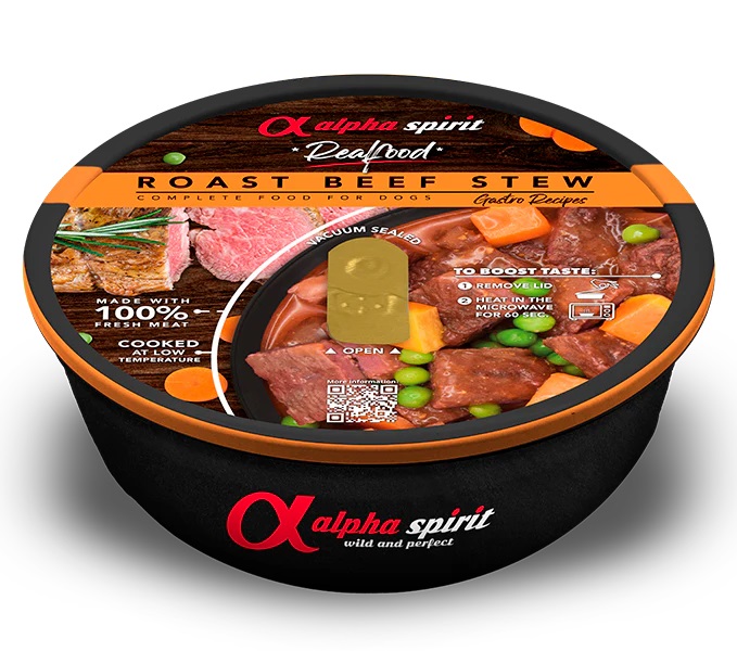 Os Estufados da Alpha Spirit são um alimento húmido completo para cães.