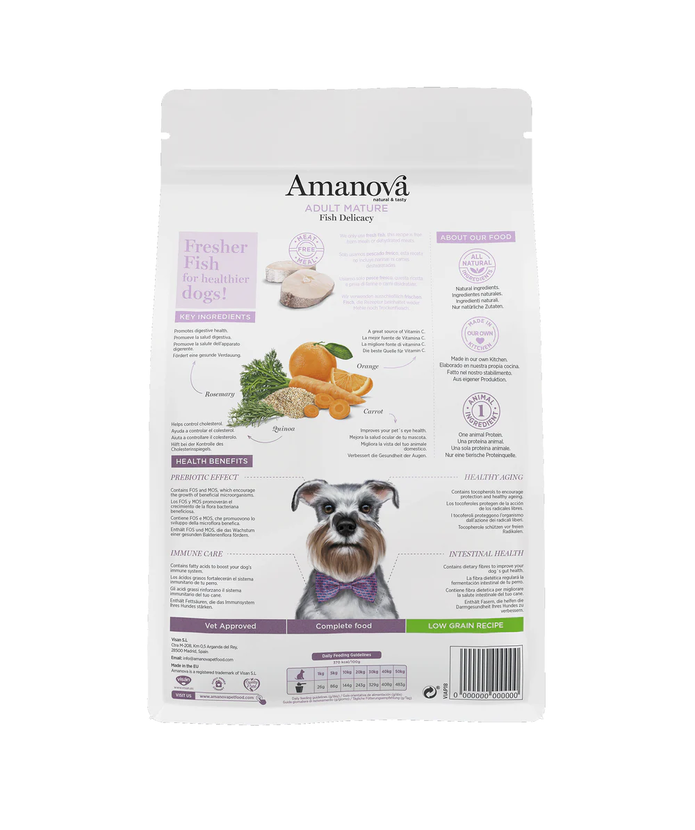 Amanova Adult Mature é um alimento hipoalergénico para cães idosos de qualquer raça ou porte.