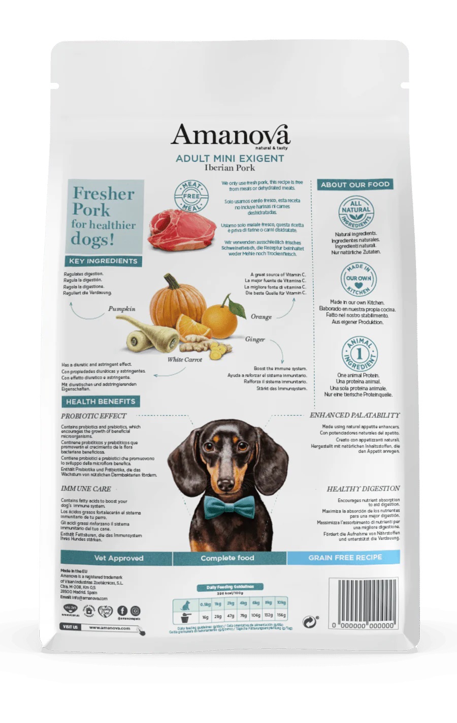 Amanova Adult Mini Exigent Pork é uma receita exclusiva que não contém farinha de carne nem carnes desidratadas, é a escolha mais fresca e saudável para conquistar o paladar do seu melhor amigo.