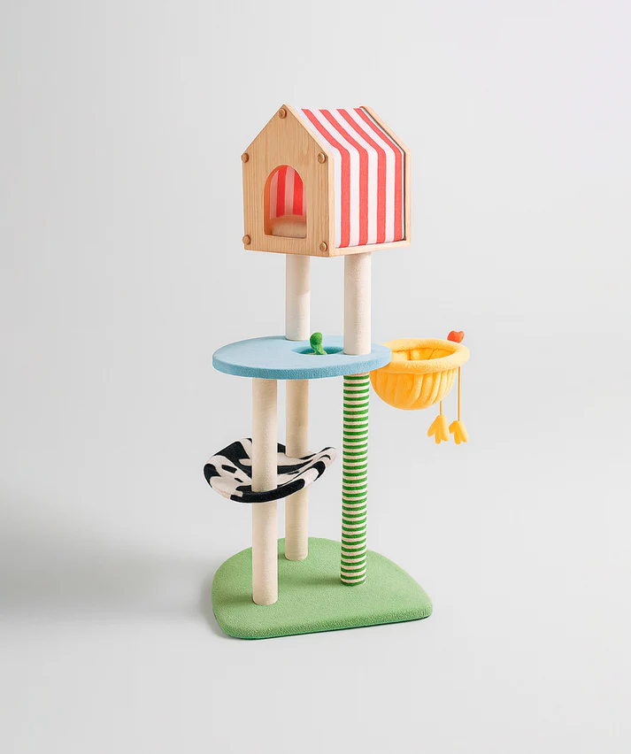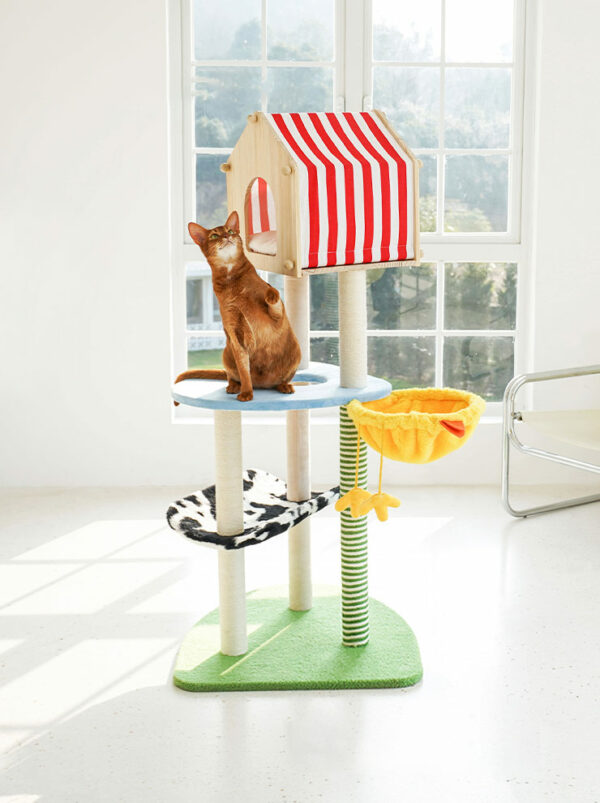 O Farm Stripes Cat Tree é um poste arranhador original e marcante, com um design original e temática da quinta, que transforma cada momento de brincadeira numa verdadeira vitória felina.