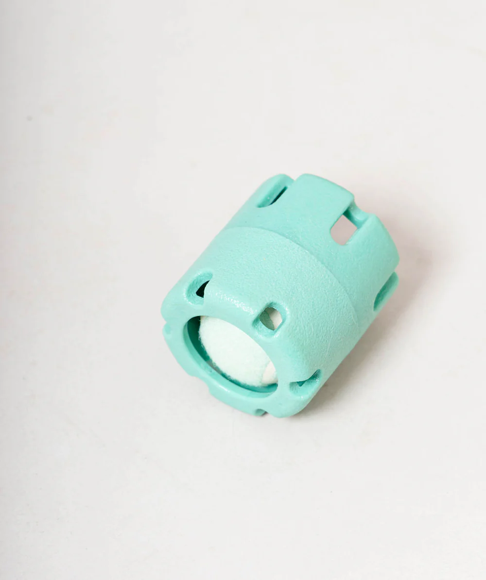 Dispositivo cilíndrico verde-água com esfera branca interior