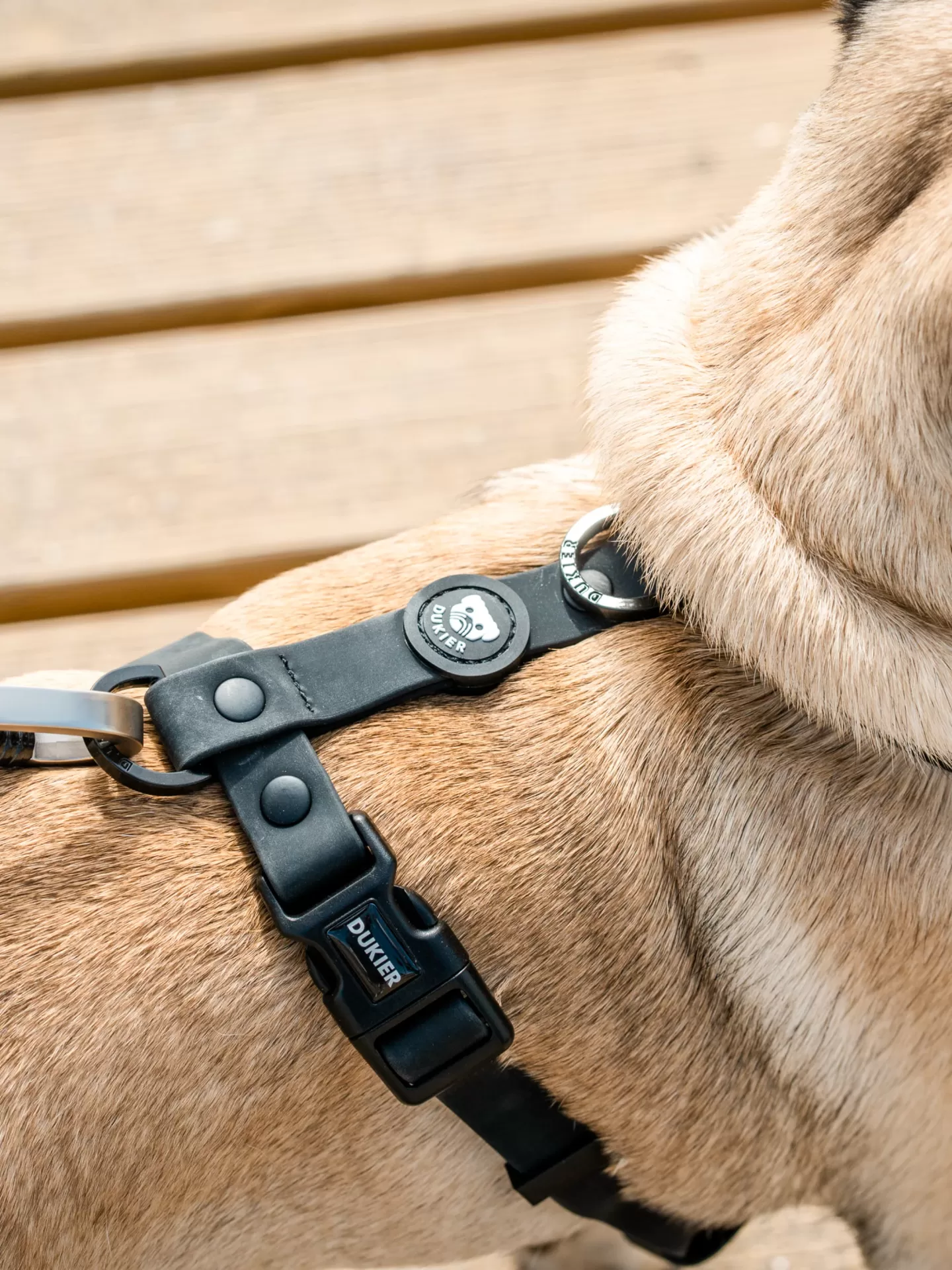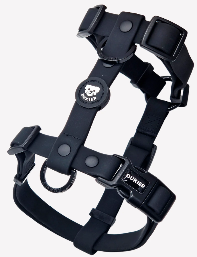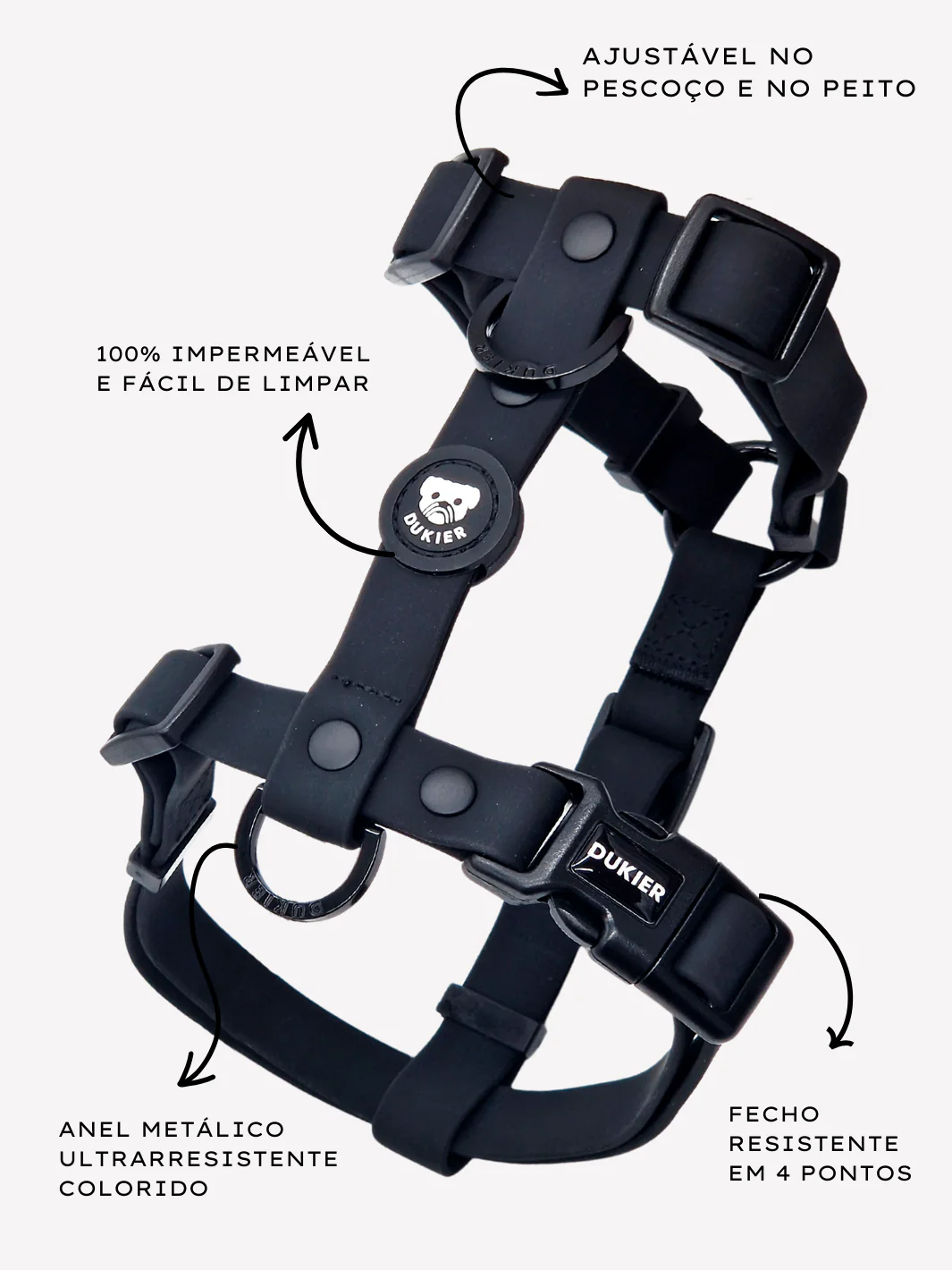 O Arnês Clássico Waterproof da Dukier foi criado para cães que não têm medo de se sujar! Seja na chuva, lama, praia ou trilhos molhados, este arnês garante durabilidade, conforto e um visual moderno em todas as situações.