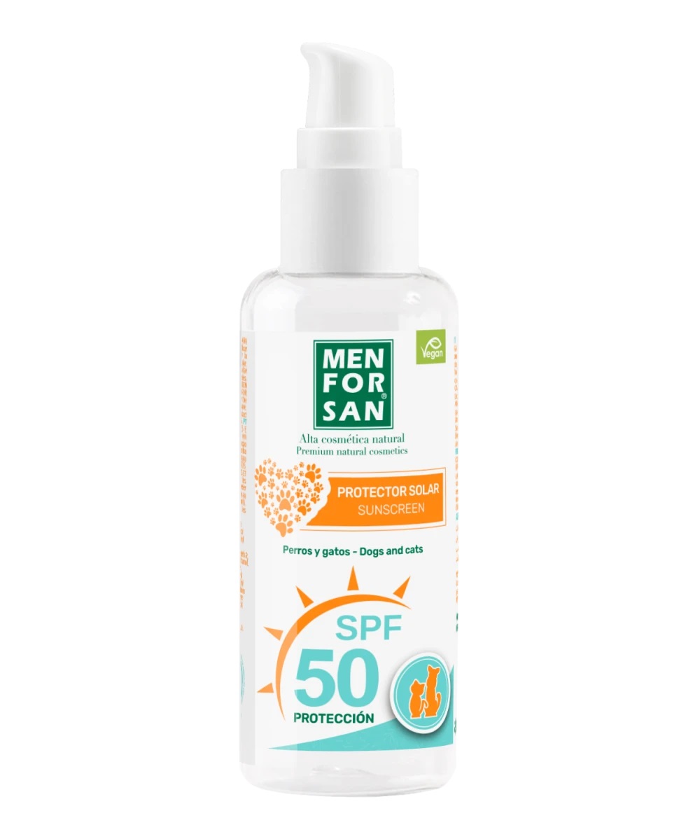 Protetor solar com fator de proteção 50 para hidratar e proteger as partes mais sensíveis da pele dos nossos cães e gatos das perigosas radiações UVA e UVB.