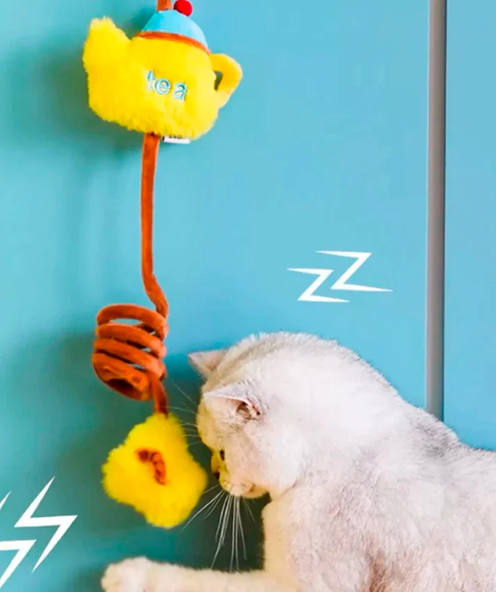 O brinquedo para gatos Teapot transforma a brincadeira numa experiência verdadeiramente divertida para o seu felino. O seu charmoso design de bule, com um cordão elástico e pompom pendurado, inclui um som interno suave que aguça ainda mais a curiosidade do seu gato.