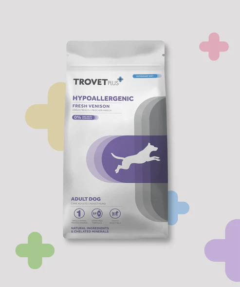 Linhas hipoalergénicas, com fontes proteicas especiais ou incomuns (por exemplo, insecto fresco, carne de cavalo) para minimizar reações alérgicas.