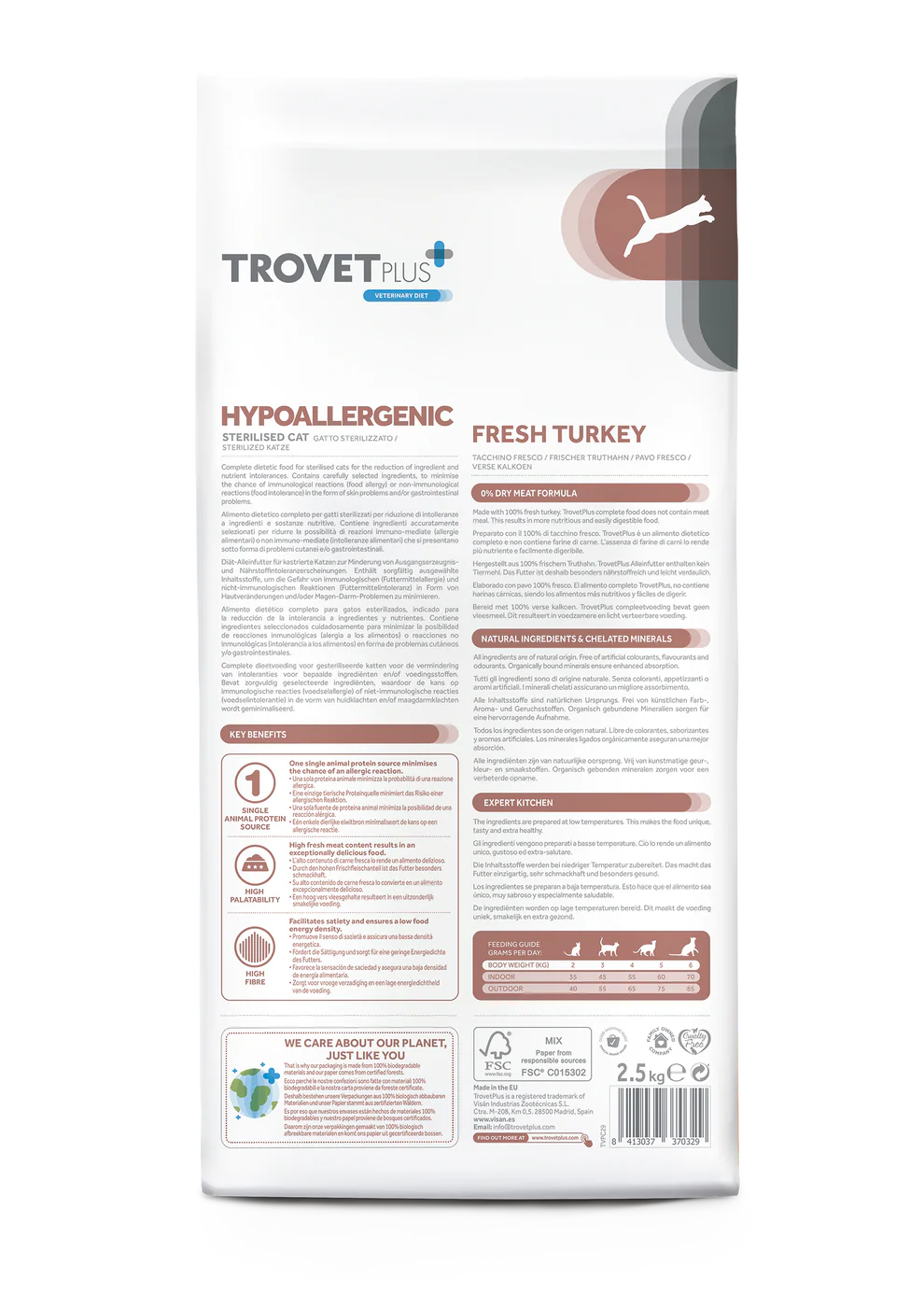 Contém ingredientes cuidadosamente selecionados para minimizar a possibilidade de reações imunológicas (alergia alimentar) ou reações não imunológicas (intolerância alimentar) em forma de problemas cutâneos e/ou gastrointestinais.
