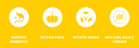 É uma fonte rica em fibra, sem OGM's, sem soja, sem cereais e apoia o sistema digestivo.